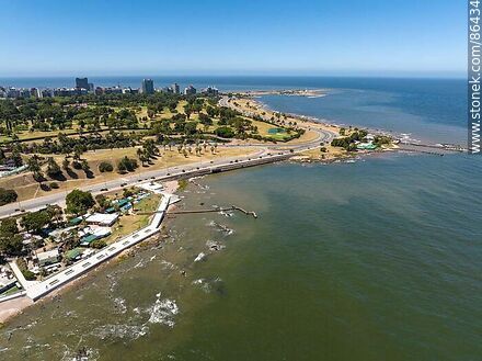Vista aérea del Paseo Verde, rambla Wilson, clubes de pescadores frente al Rio de la Plata. Club de Golf | Foto #86434