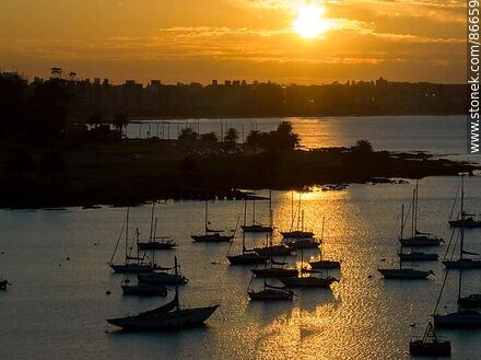 Vista aérea de veleros en el puerto del Buceo a la salida del sol | Foto #86659