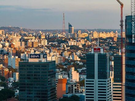 Vista aérea de torres del WTC y, al fondo, la torre de Antel y el Cerro de Montevideo. | Foto #86668