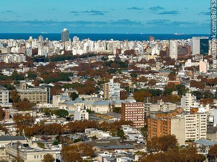 Vista aérea de Montevideo que incluye edificios de los barrios Arroyo Seco, Goes, La Comercial, Centro, Cordón, Pocitos, BPS, DGI | Foto #86753