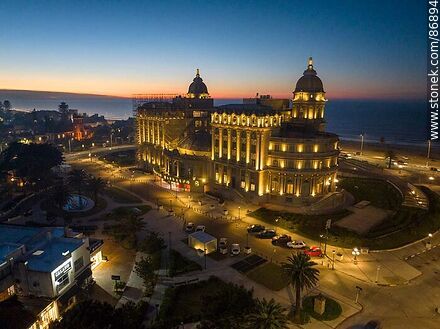 Vista aérea del hotel Carrasco al amanecer frente a la playa y la rambla Rep. de México | Foto #86894