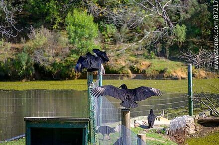 Jote Cabeza Negra (Coragyps atratus) Familia: Cathartidae Nombre común: Jote, Buitre negro americano Descripción: Ave carroñera de gran tamaño, con plumaje negro y cabeza desnuda de color oscuro. Las puntas blancas en las alas son visibles en vuelo o con las alas abiertas. Hábitat: Zonas rurales, campos abiertos, carreteras y áreas cercanas al agua. Muy común en Uruguay y gran parte de América. Alimentación: Carroñero. Se alimenta de animales muertos y residuos orgánicos. Cumple una función ecológica esencial. Comportamiento: Vuela en grupos, con aleteos cortos y planeos. No tiene canto, emite gruñidos o bufidos. Suele posarse con las alas abiertas para secarse o calentarse. Estado de conservación: No amenazado. Se adapta bien a entornos humanos.