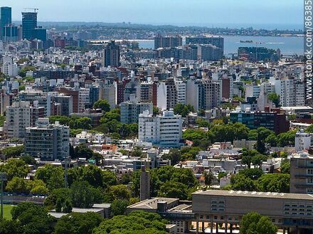 Aerial view of buildings in Punta Carretas, Pocitos and Buceo neighborhoods