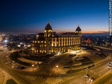 Aerial view of the Carrasco hotel at sunrise in front of the beach and the Rep. de Mexico promenade. | Photo #86891