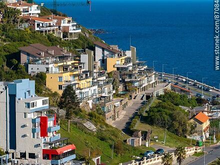 Aerial view of terraced houses on Cerro San Antonio overlooking the Río de la Plata