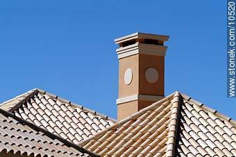Claves o etiquetas de esta foto: chimenea techo tejas aguas
