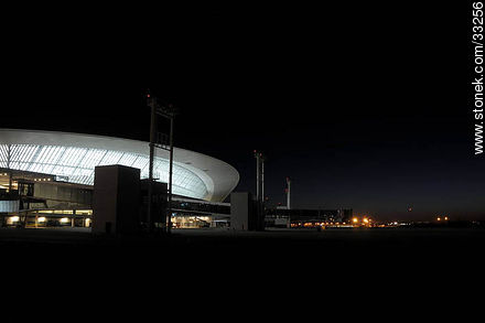 Vista nocturna de la pista y edificio del aeropuerto internacional de Carrasco en Canelones, Uruguay | Foto #33256