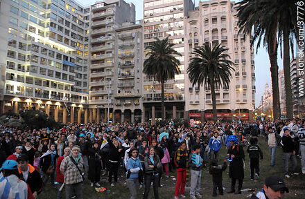 Trasmisión del partido Uruguay - Ghana por pantalla gigante en la Plaza Independencia de Montevideo. | Foto #37776