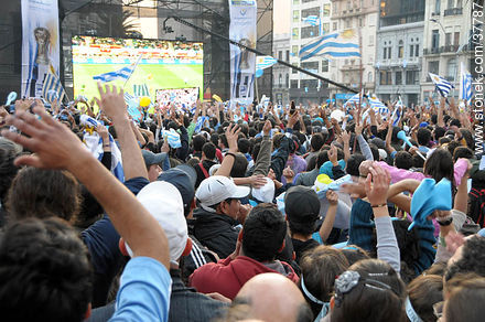 Trasmisión del partido Uruguay - Ghana por pantalla gigante en la Plaza Independencia de Montevideo. | Foto #37787