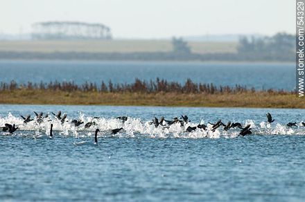 Gallaretas en la laguna Garzón volando al ras del agua | Foto #54329