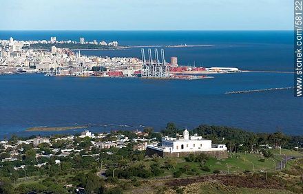 Vista aérea del Cerro, su fortaleza, la bahía y la ciudad de Montevideo | Foto #58122