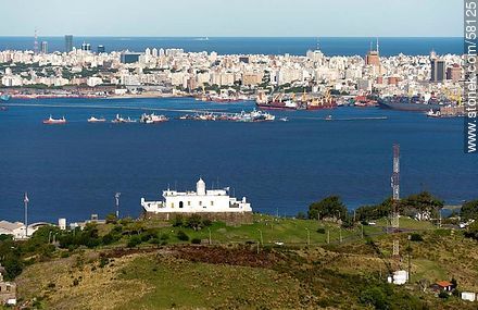 Vista aérea del Cerro, su fortaleza, la bahía y la ciudad de Montevideo | Foto #58125
