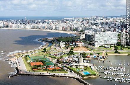 Vista aérea del Puerto del Buceo, Yacht Club, edificio Panamericano, playa Pocitos | Foto #58338