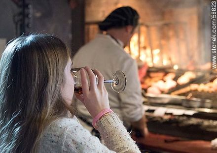 Parrillada en el Mercado del Puerto. Joven tomando de una copa