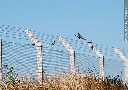 Claves o etiquetas de esta foto: aves tijeretas alambres puas