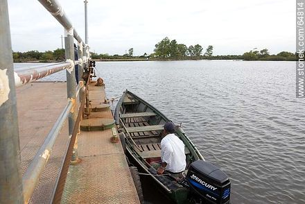 Cruce en balsa del arroyo Parao, afluente del Río Cebollatí. Lancha guía | Foto #64814
