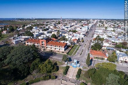 Foto aérea de la Avenida 18 de Julio, hotel Fray Bentos y monumento al intendente Ruggia | Foto #65854