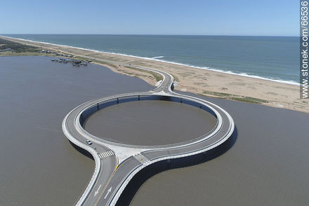 Vista aérea del puente circular sobre la Laguna Garzón