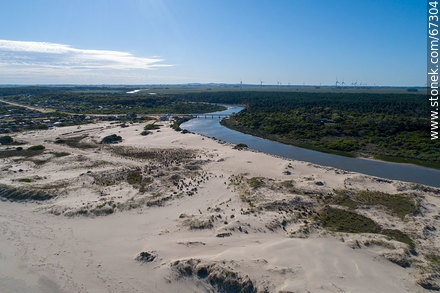 Vista aérea del arroyo Chuy en su desembocadura en el Océano Atlántico. Límite fronterizo con Brasil | Foto #67304