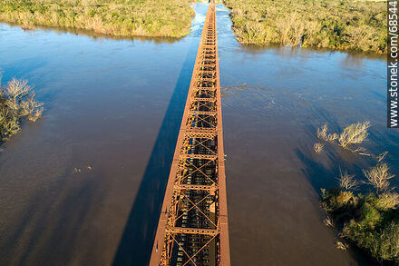 Vista aérea del puente ferroviario que cruza el río Santa Lucía. Limite entre Canelones y Florida | Foto #68544