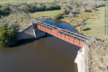 Vista aérea del puente ferroviario en desuso sobre el arroyo Blanquillo. Km. 271 | Foto #69141