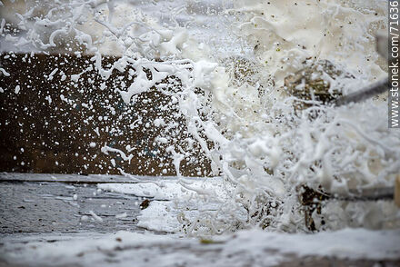 Espuma rompiendo sobre las escaleras de acceso a la playa | Foto #71636
