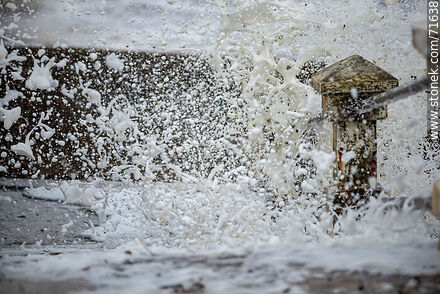 Espuma rompiendo sobre las escaleras de acceso a la playa | Foto #71638