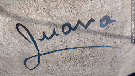 Casa de Juana de Ibarbourou. Inscripción en la calzada de la calle Treinta y Tres
