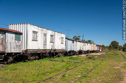 Estación de trenes Cazot en San Bautista. Fila de antiguos vagones de carga