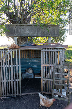 Estación Talita de trenes. Cartel de la estación detrás de un gallinero