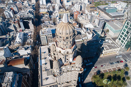 Vista aérea del Palacio Salvo, calle Andes y el Palacio Estévez