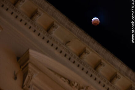 Eclipse lunar del 16 de mayo de 2022 saliendo de la etapa total con referencia del Palacio Estévez en Plaza Independencia | Foto #77849