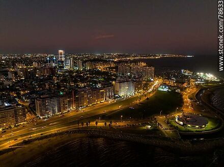 Vista aérea nocturna de Pocitos y Buceo sobre la costa al anochecer | Foto #78633