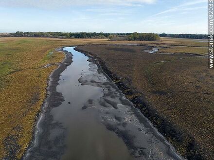 Vista aérea de la falta de agua y sequía del año 2023 en el embalse del arroyo Canelón Grande | Foto #82033