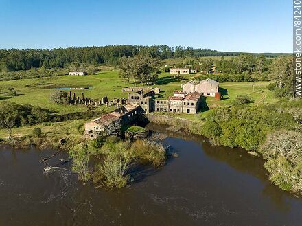 Vista aérea de los restos de la represa y usina minera del arroyo Cuñapirú