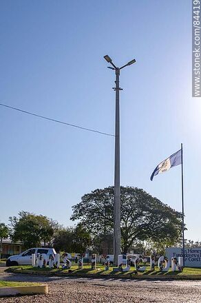Letrero y bandera de Villa Constitución en la entrada al pueblo | Foto #84419