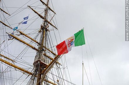 Bandera italiana flamenado en el Buque escuela y velero italiano Amerigo Vespucci en Montevideo | Foto #84739