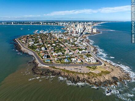 Vista aérea de la Península de Punta del Este desde el extremo sur en Punta Salinas