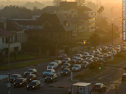 Vista aérea del tránsito en la rambla de Carrasco a la salida del sol | Foto #86863