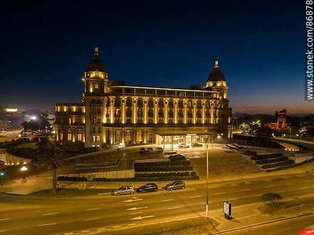 Vista aérea del hotel Carrasco al amanecer frente a la playa y la rambla Rep. de México | Foto #86878