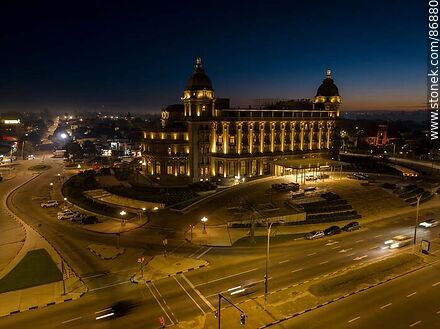 Vista aérea del hotel Carrasco al amanecer frente a la playa y la rambla Rep. de México | Foto #86880