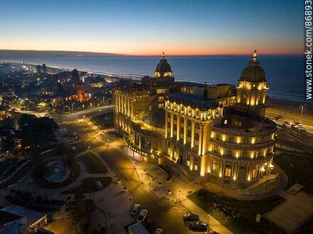 Vista aérea del hotel Carrasco al amanecer frente a la playa y la rambla Rep. de México | Foto #86893