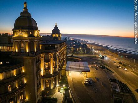 Vista aérea del hotel Carrasco al amanecer frente a la playa y la rambla Rep. de México | Foto #86895
