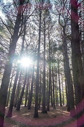 Bosque de pinos. Sol entre los árboles