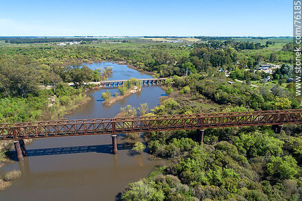 Vista aérea del puente ferroviario y el Puente Viejo sobre el río Yí