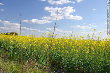 Campos de canola. Flores amarillas contra el cielo azul. Bandera de Ucrania