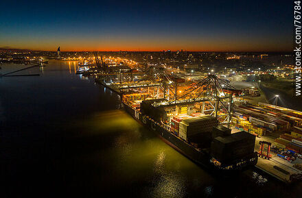 Vista aérea de la Terminal Cuenca del Plata en el puerto de Montevideo al atardecer - Foto #79007