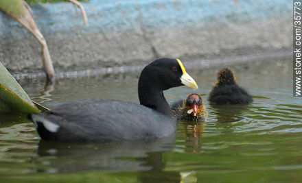 Gallareta chica con sus pichones. Zoológico de Durazno.