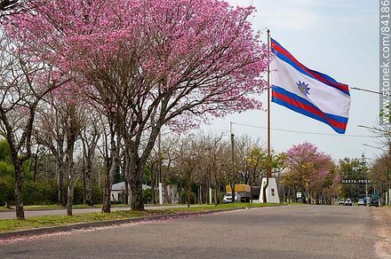 o roble sabana y la bandera de Paysandú en la Avenida Italia