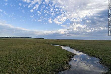 Vista aérea una cañada en campos del departamento de Rocha